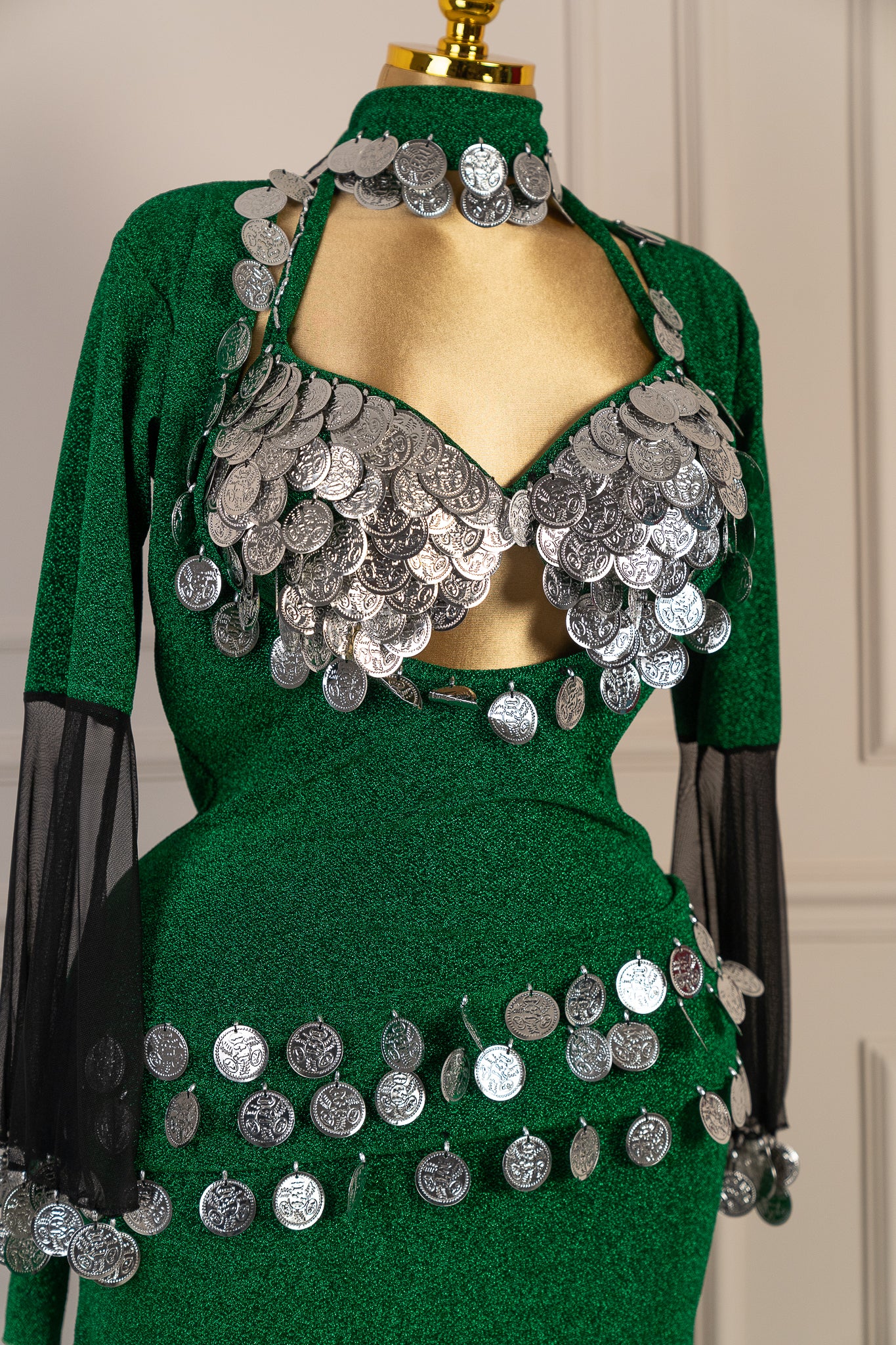 Unleash your inner dancer with this captivating belly dance set! Designed to celebrate movement and confidence, this ensemble features shimmering fabrics and intricate details that catch the light with every shimmy and sway. Perfect for performances, classes, or adding a touch of glamour to your dance practice, this set combines comfort with stunning visual appeal. Whether you're a seasoned performer or just discovering the joy of belly dance, this outfit lets you move freely while looking absolutely radiant. Get ready to turn heads and feel fabulous!