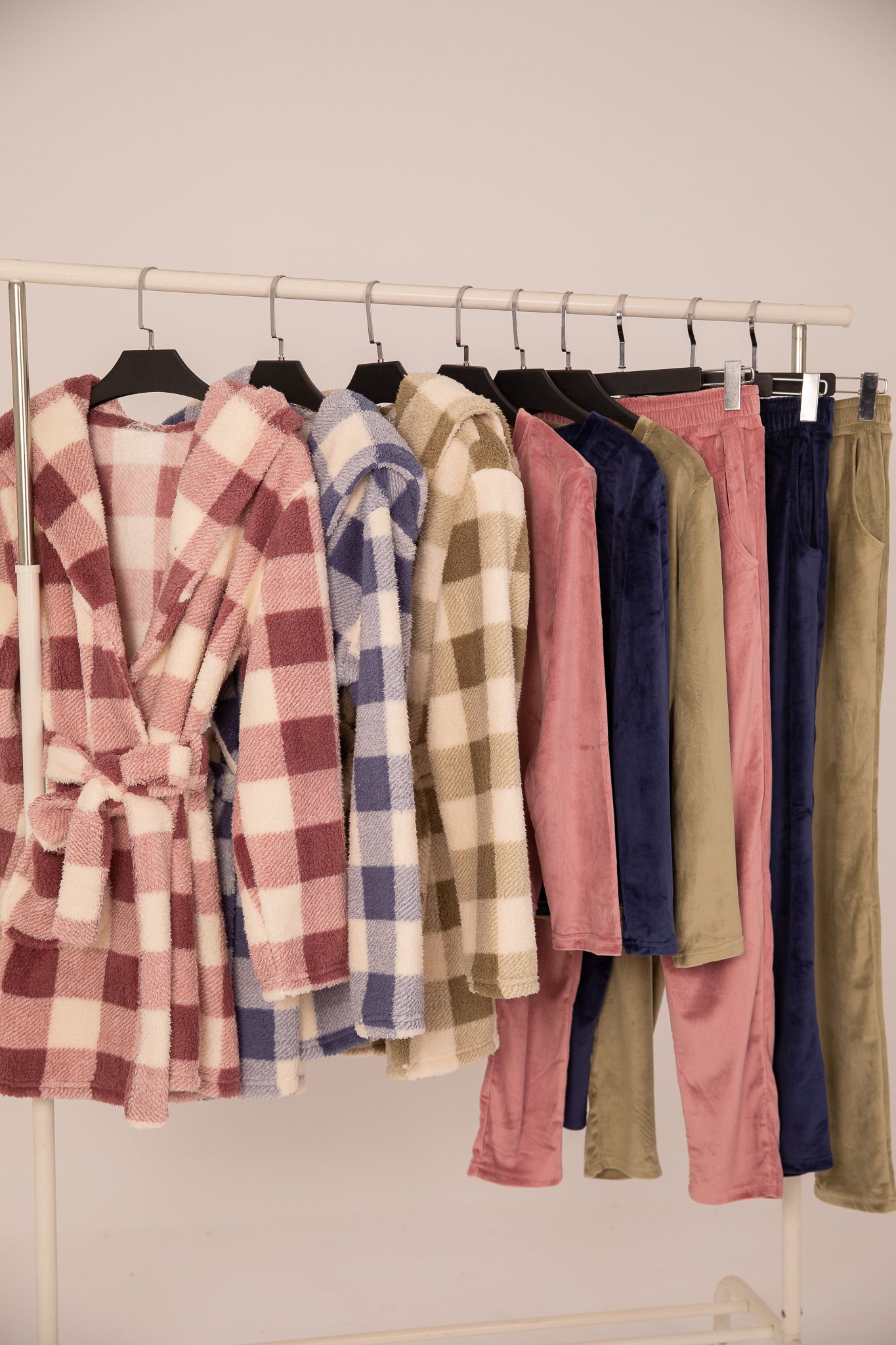 Slip into pure comfort with our luxurious Velvet Pajama Set! This dreamy three-piece collection features a soft velvet top, matching bottoms, and a cozy robe that'll make bedtime feel like a spa day. The plush fabric hugs your skin with gentle elegance while keeping you warm through the night. Perfect for lounging, sleeping, or those lazy weekend mornings when you want to feel absolutely fabulous. Treat yourself to the ultimate relaxation experience!